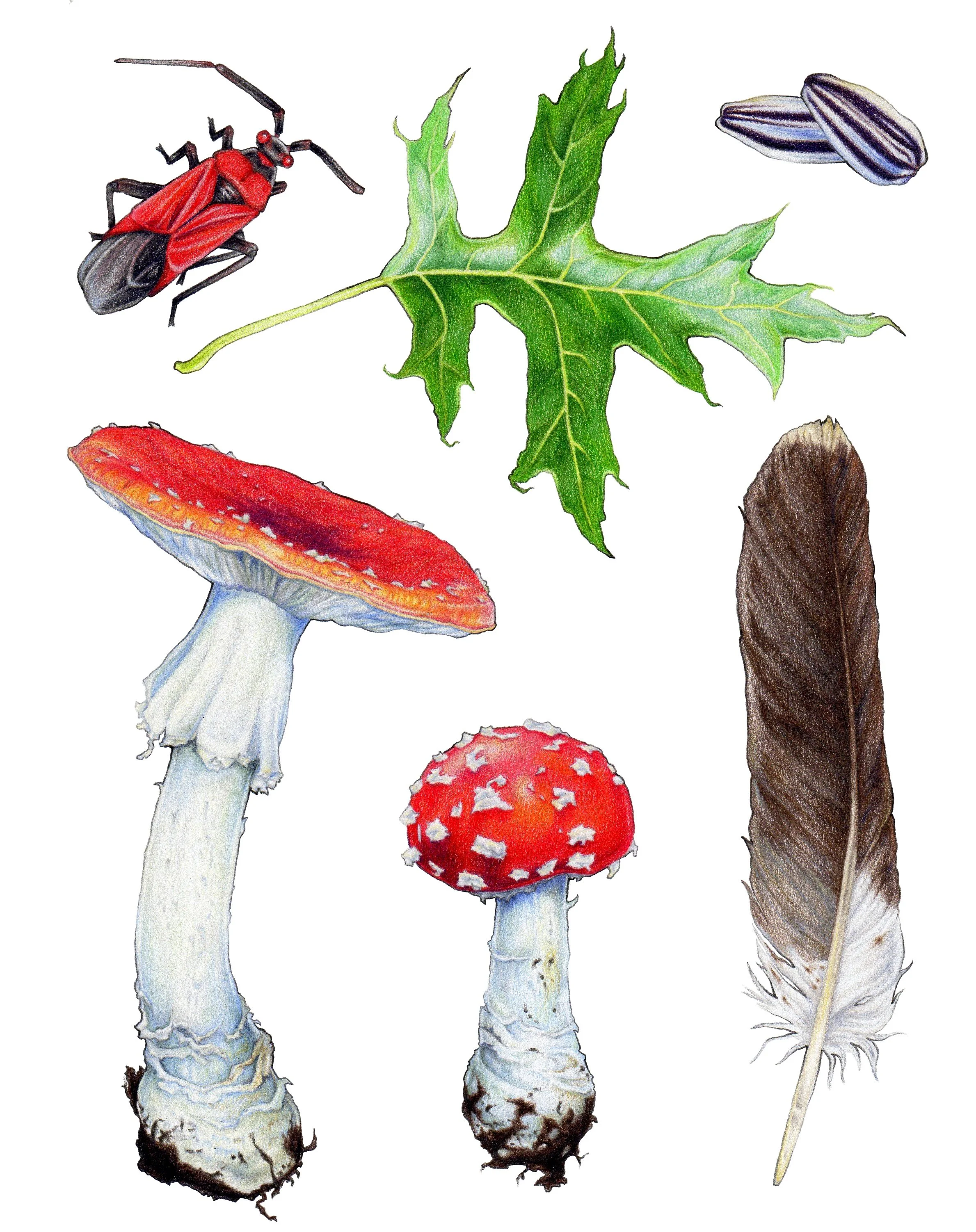Below you will find a selection of “Natural History Plates”— a style of artwork based on the historical practice of printing collections of meticulously studied elements of nature together in one image.